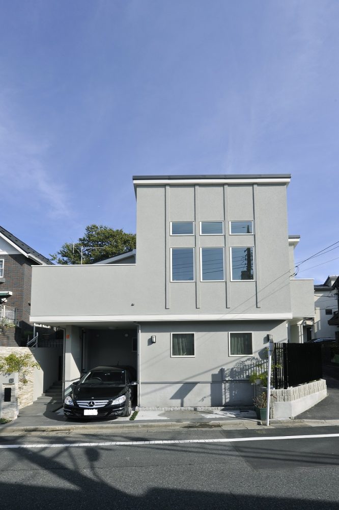自然の岩肌を表現したオールホワイトの外壁材はグストVZ